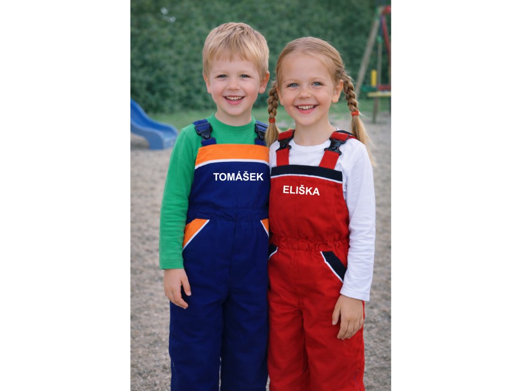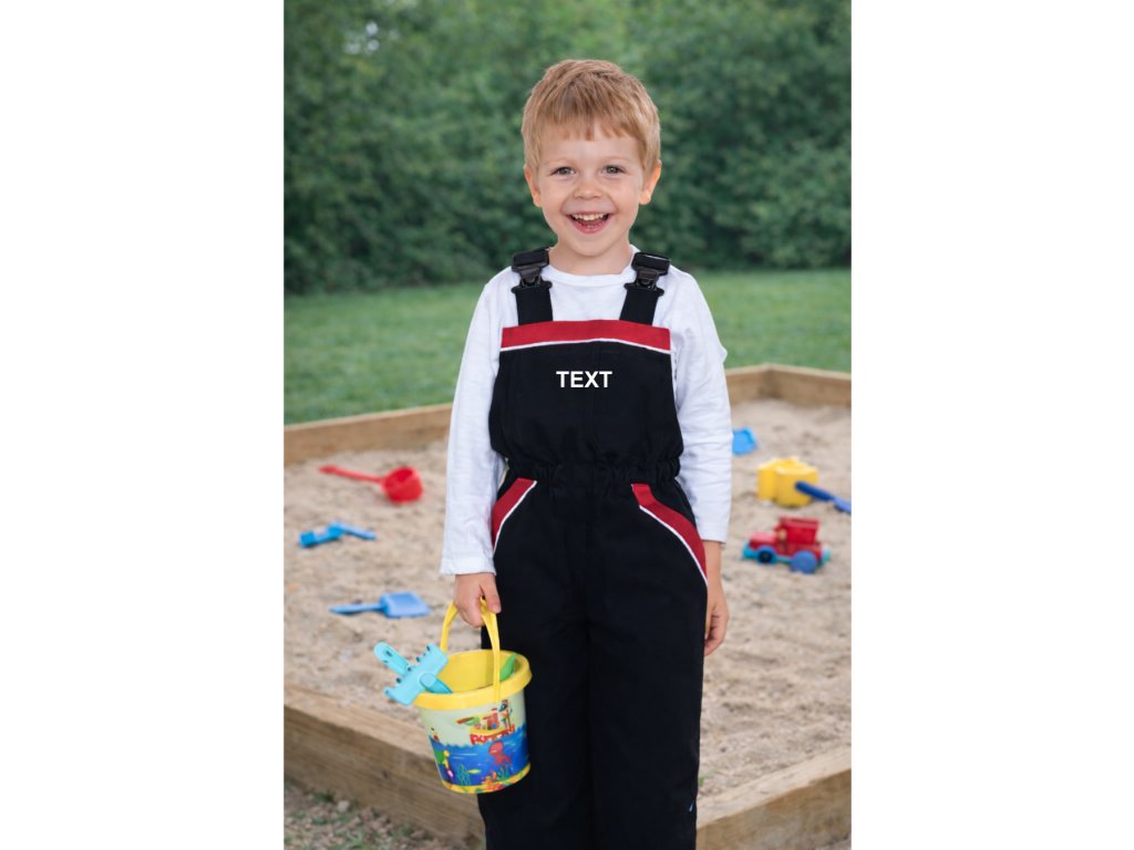 ALEX dětské kalhoty s laclem + vlastní TEXT