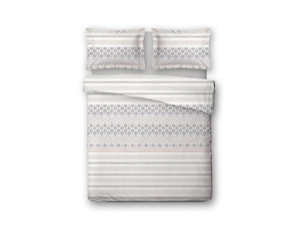 Dodejte své ložnici klid a nadčasovou eleganci. Povlečení z naší nové kolekce je vyrobené z jemného bavlněného saténu, který je hladký na dotek a působí s nenápadným, luxusním leskem. Abstraktní potisk v neutrálních tónech kombinuje decentní pruhy a geometrickou mřížku, díky čemuž se snadno sladí s jakýmkoli interiérem. Praktické zapínání na zip usnadňuje povlékání i údržbu.