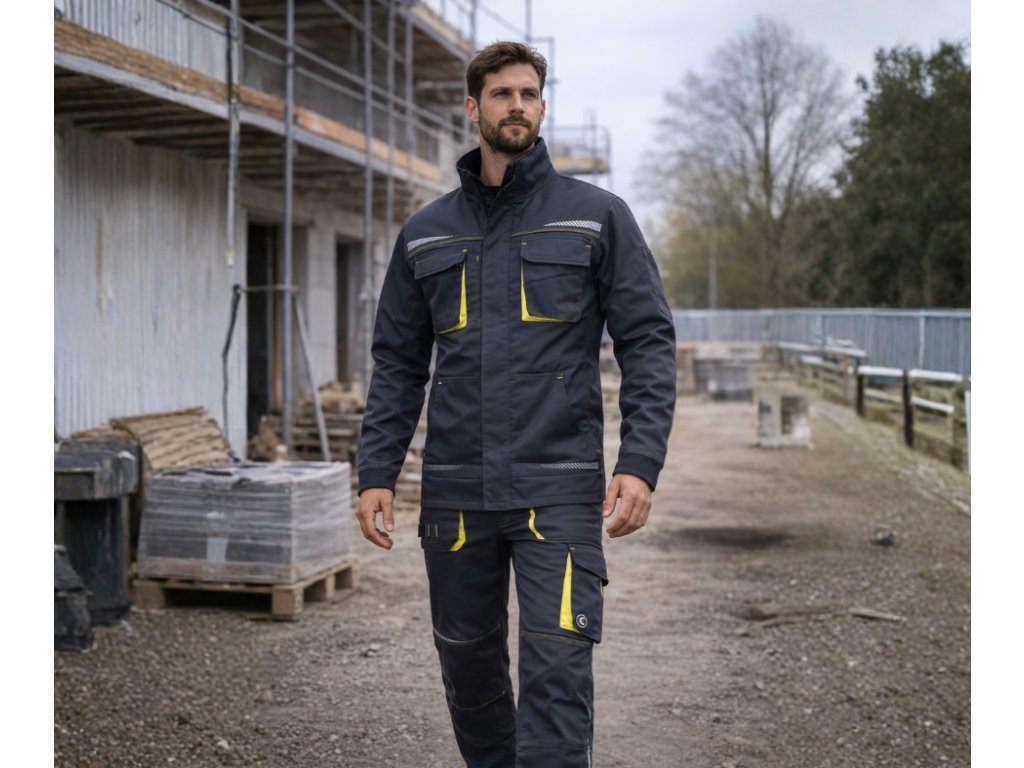 • pánská vysoce odolná strečová pracovní bunda • přední zapínání na zip kryté légou • 2 boční kapsy • 2 náprsní kapsy, jedna na mobilní telefon • Oxford 600D zesílení v oblasti ramen a loktů • tištěné reflexní segmentové detaily • pletené elastické manžety rukávů