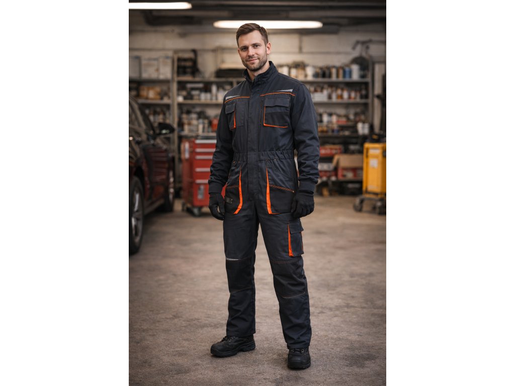 • pracovní vysoce odolný strečový overal s elastickým pasem • multifunkční kapsy • 2 náprsní kapsy z toho jedna na mobilní telefon • Oxford 600D zesílení v oblasti loktů a kolenních kapes pro vložení chráničů kolen • odepínací rukávy s pletenými elastickými manžetami • reflexní segmentové detaily • prodloužitelná délka nohavic
