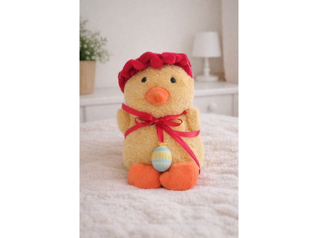 Navoďte svým dětem Velikonoční náladu s tímto plyšákem kuřátka s vajíčkem.