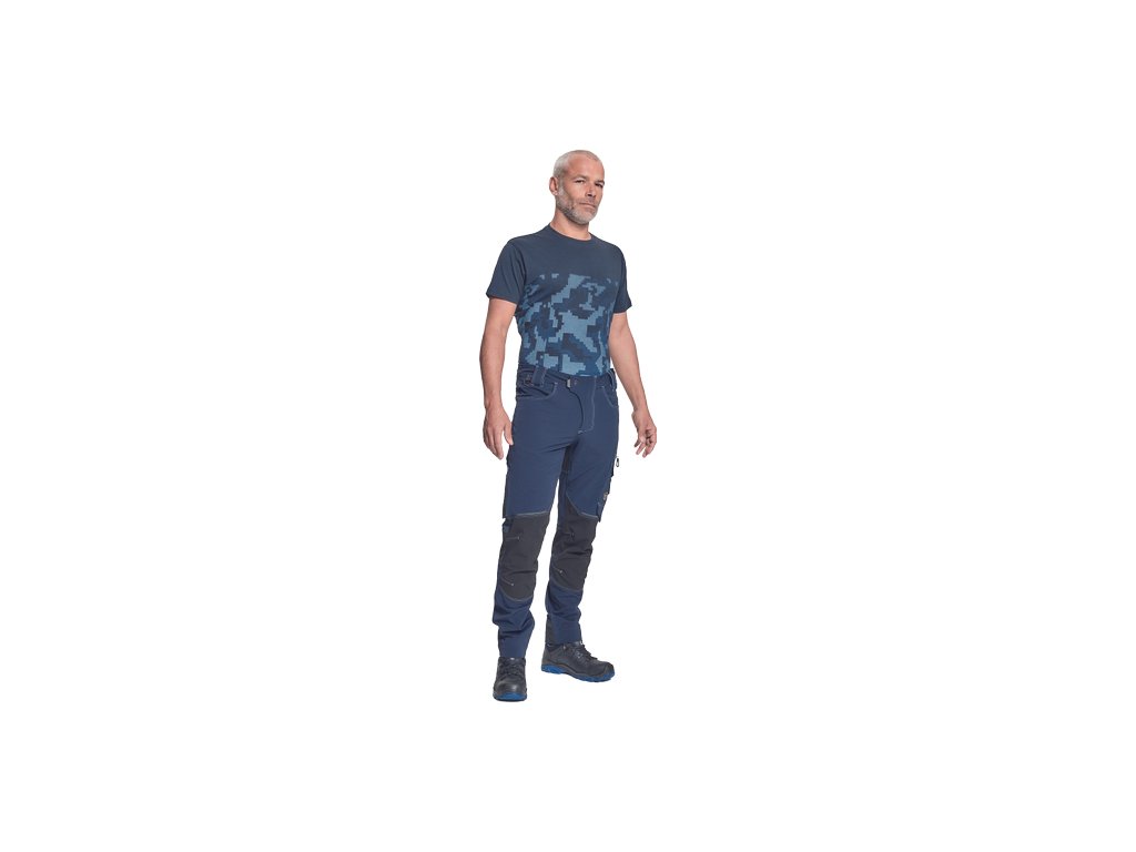 pánské pracovní kalhoty s pružným pasem; elastický inovativní materiál TRIFIBETEX PRO®; odolné trojité prošití nohavic a sedu; CORDURA zesílení v oblasti kolen; prostorné multifunkční přední kapsy s poutky na nářadí; reflexní prvky v barevném odstínu; nastavitelná délka nohavic.