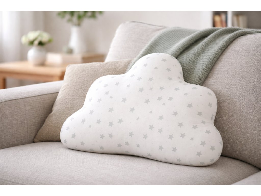 Polštářek je z jedné strany potištěný drobnými hvězdičkami, které jsou rozházené jako hvězdy na noční obloze. Zadní strana je jednobarevná, světle šedá. Mikrospandex v kombinaci s výplní z dutého vlákna nezklame ani toho nejnáročnějšího zákazníka.
