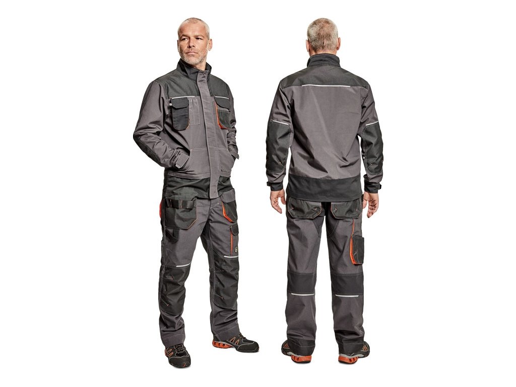 pánská pracovní bunda, zapínání kryté légou na suchý zip; 2 přední kapsy, 2 náprsní kapsy; 1 náprsní kapsa na mobilní telefon; Oxford 600D zesílení loktů; reflexní prvky; kontrastní prošití.