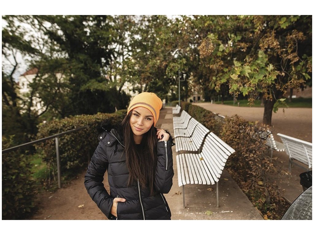 Zimní čepice z dvojitého úpletu, která má bezpečnostní rexflexní proužek.