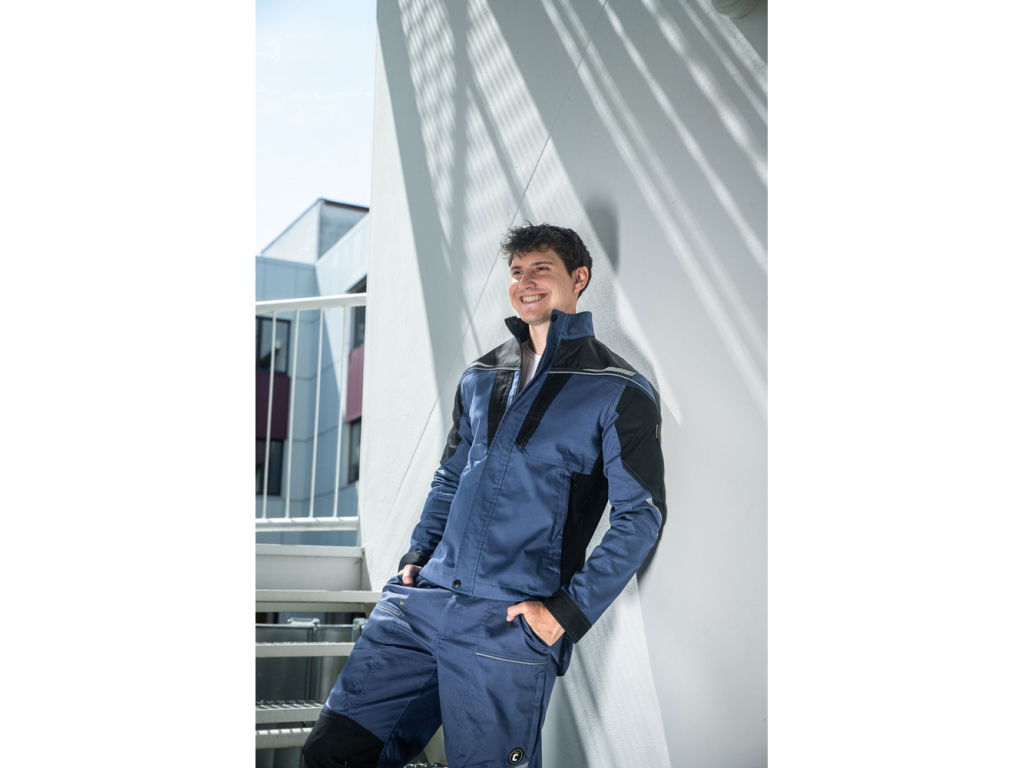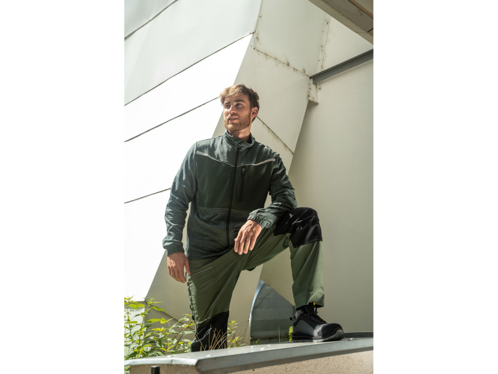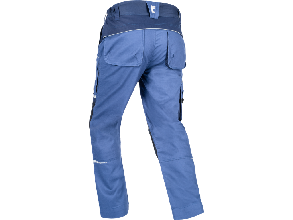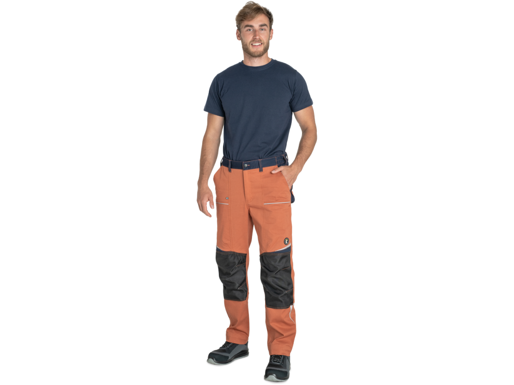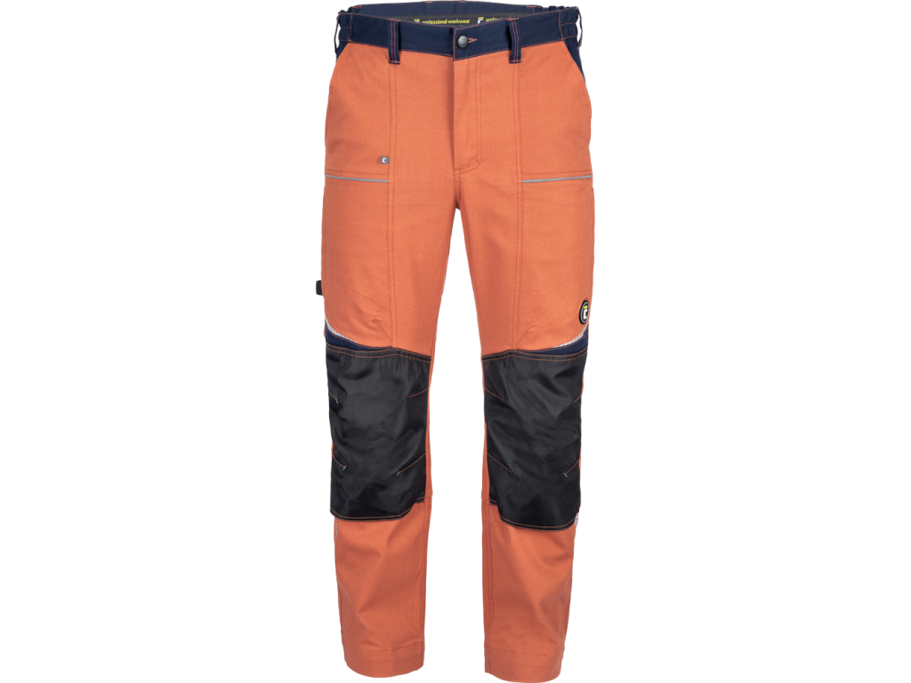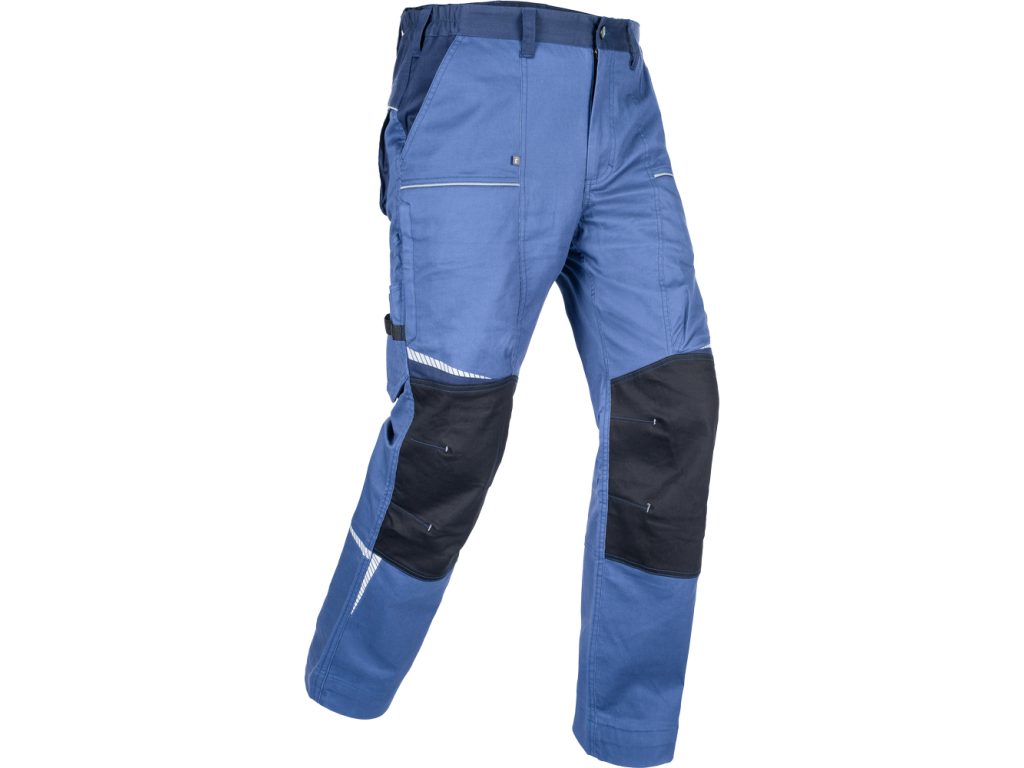 • pánské pracovní kalhoty z lehké strečové tkaniny • pružný pas s poutky na opasek • 2 přední kapsy, 2 zadní kapsy • 2 stehenní ventilační mesh kapsy na zip • 1 multifunkční kapsa na pravém stehně • reflexní lemování a tištěné reflexní detaily • nohavice prodloužitelné o 5 cm